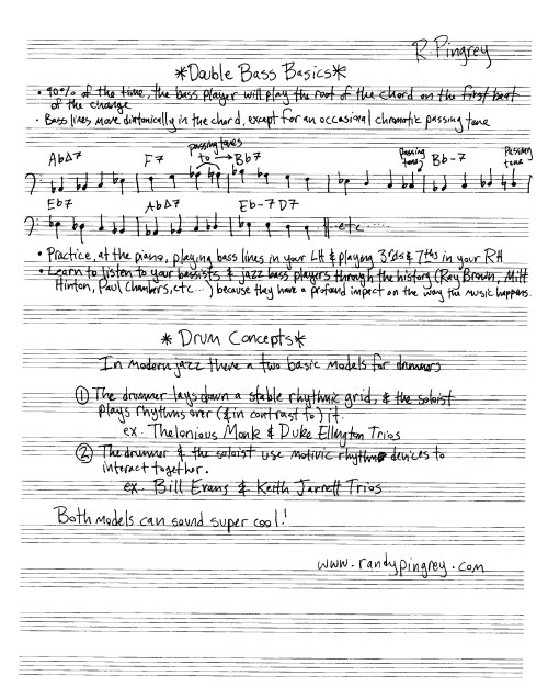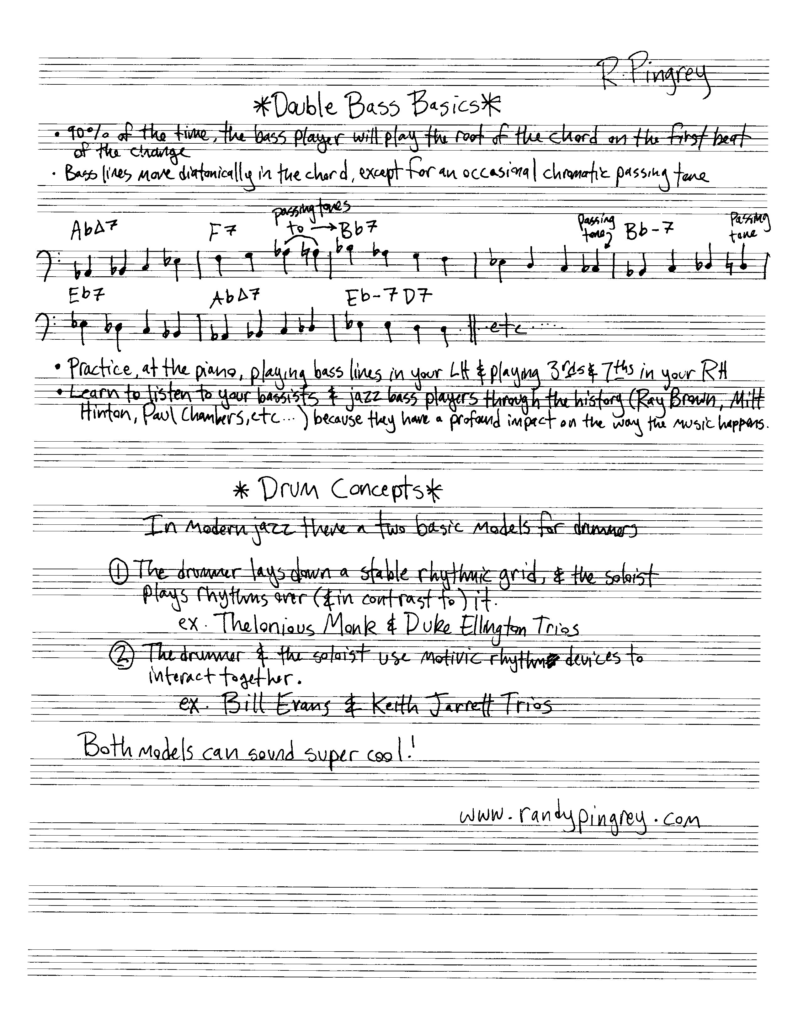 I wrote this handout for a class Kathy and I did at UVA last week. I hope you enjoy it (pdfs are at the bottom of the post, if that’s more your style). Special thanks goes to John D’earth and everyone else in the Jazz program at UVA. Kathy and I had an amazing time!